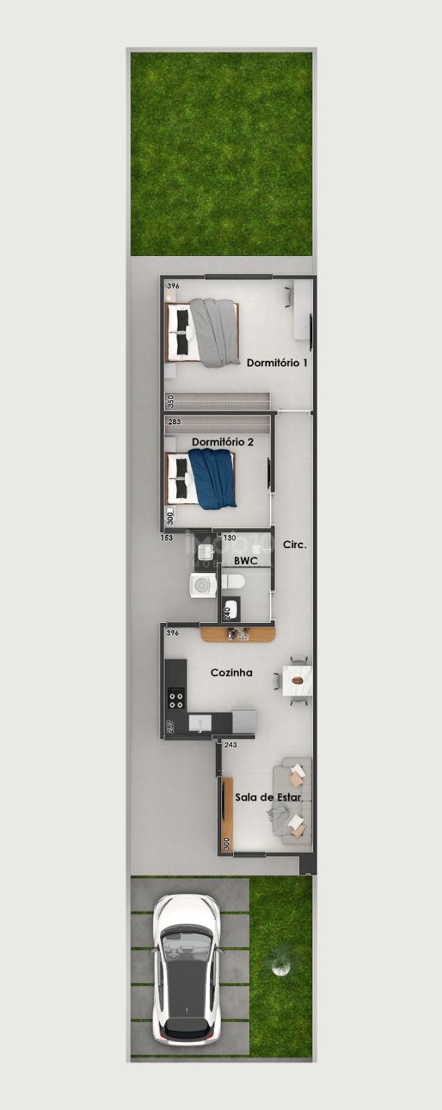 - Corredor lateral com área de serviço